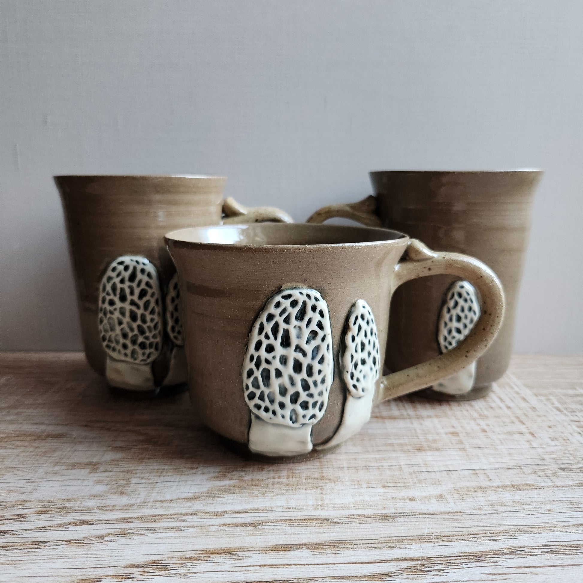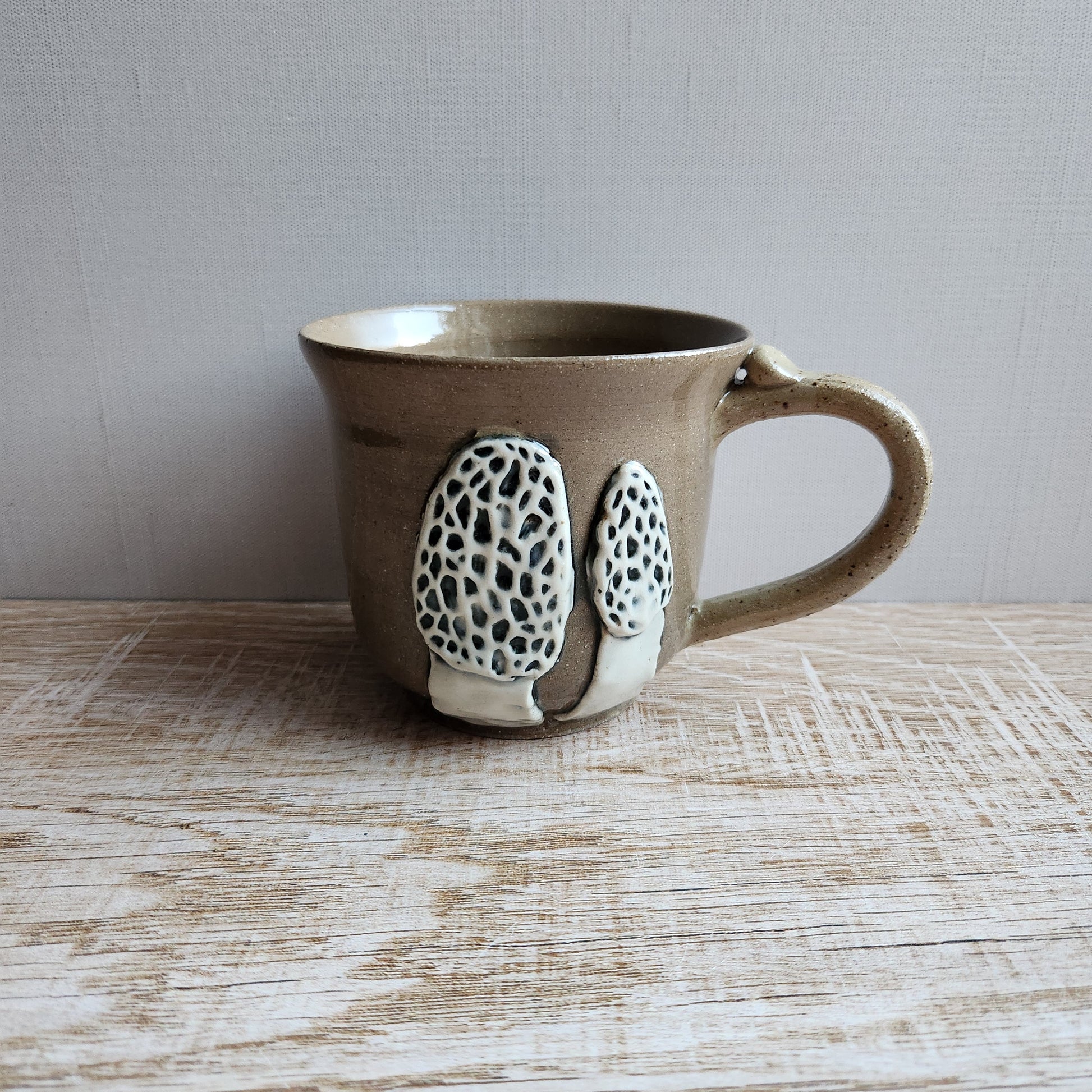 These beautiful handmade mugs by Sky Mage are perfect for any morel mushroom lover in your life. Each mug is the wonderful addition to any kitchen or breakfast nook. With a wide handle and thumb rest, these mugs fit perfectly in any hand.