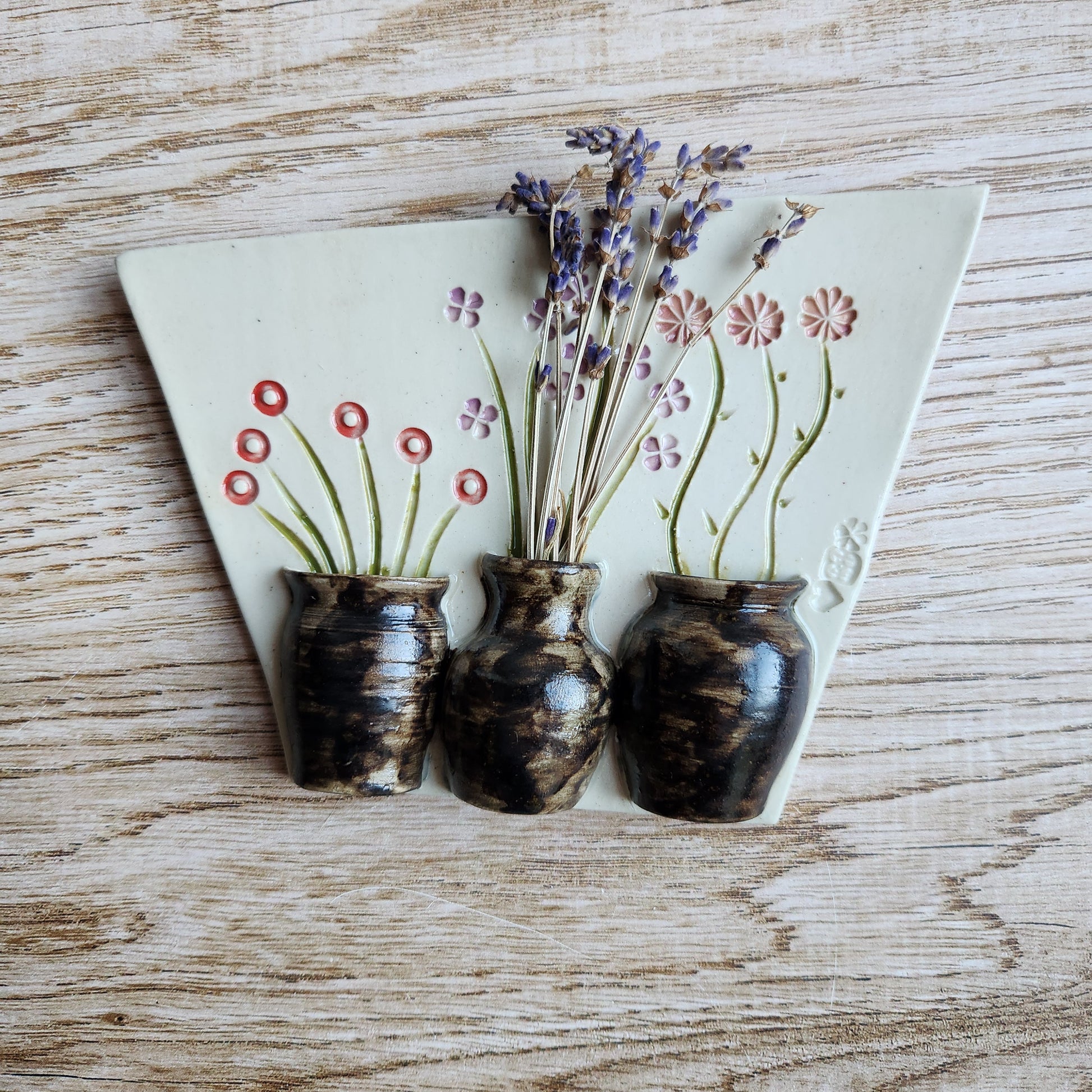 These beautiful wall vase trios are a perfect addition to any space. Fill with fresh or dried steams, or leave as is, these charming floral miniature vases add delight wherever they are placed.